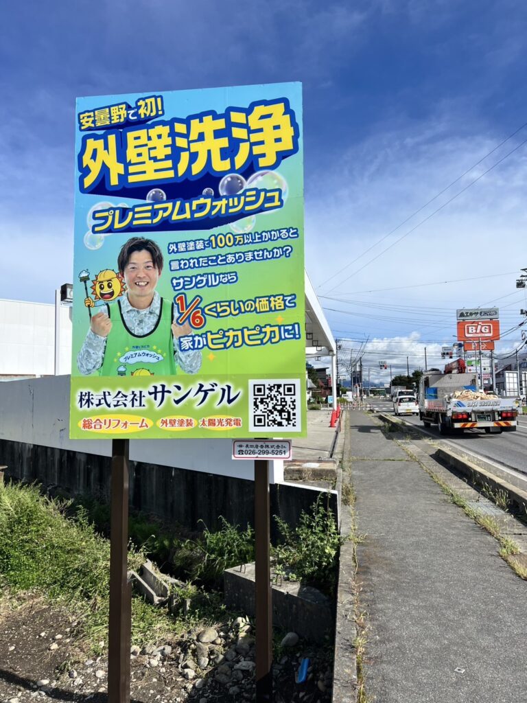 実は今、松本市・安曇野市の主要道路や商業エリアに、サンゲルの看板を設置しています!